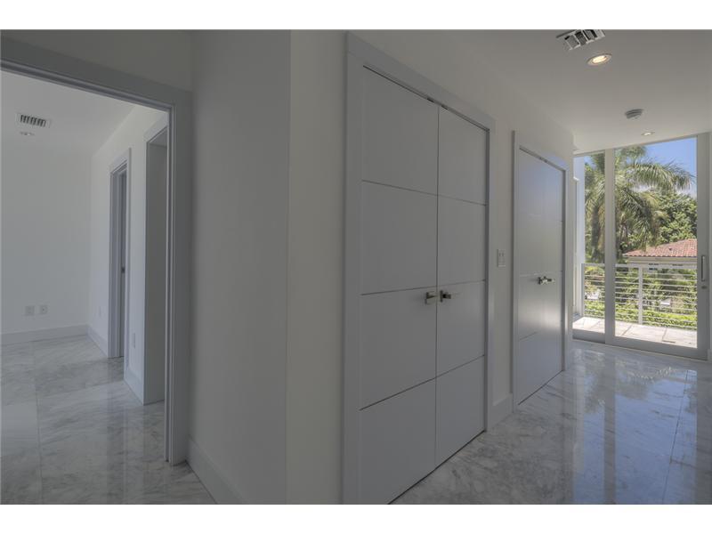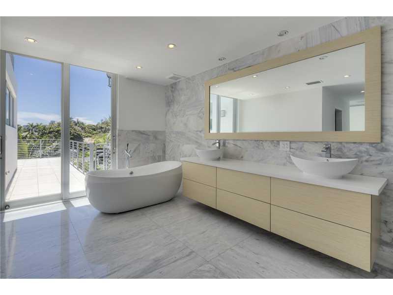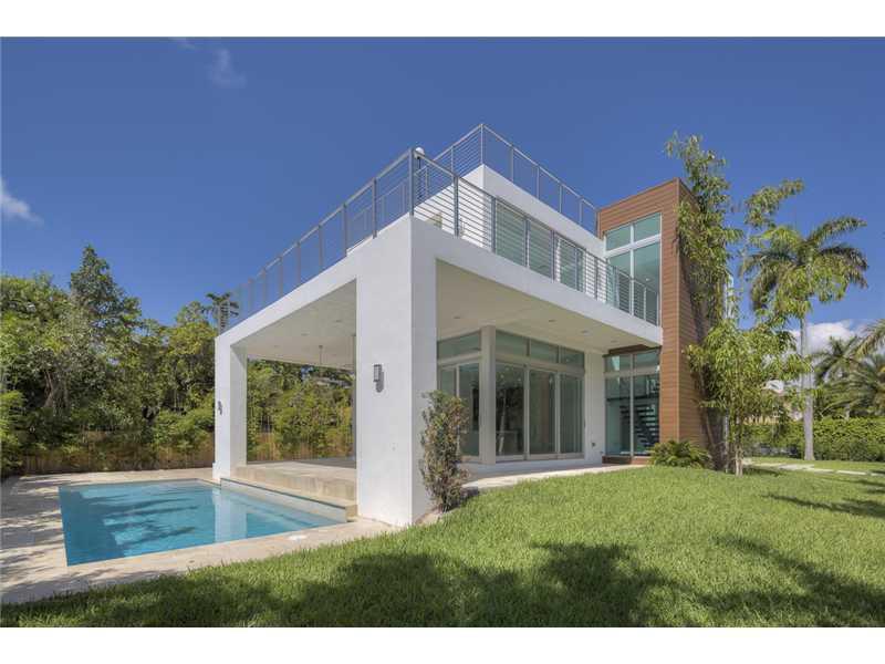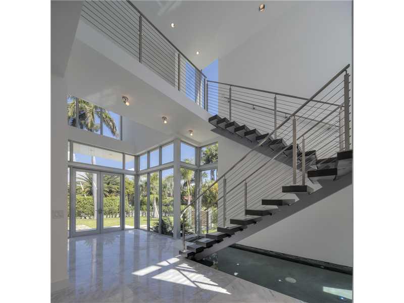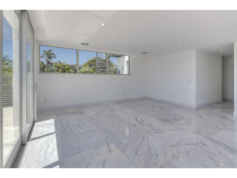 Gated exclusive Hibiscus Island, Miami Beach. Brand new ultra-modern design luxury home w/ top of the line finishes & pool with limestone flooring. Completed May 2015; Foyer entrance has dramatic 26 ft. ceiling. 11 ft. ceiling throughout home. Wall to wal l 36"x 36" Italian Carrara marble floors, 4 beds/4 baths upstairs with water views from terraces & custom walk in closets, 1100 sq.ft. lighted roof top terrace & incredible panoramic views. 1 bed/1.5 baths downstairs. Fabulous indoor reflective pool.