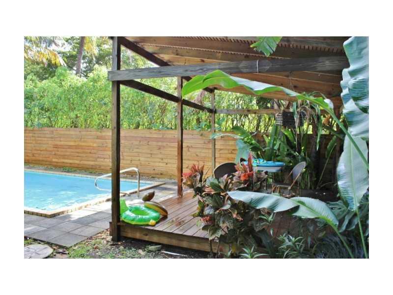 This classic home has terrazzo floors the bedroom areas & the living room which has a inlaid border. The huge open beamed family room has tile floors with a wall of windows to the backyard view. A wood framed, metal roofed screened porch adjoins the famil y room for outdoor eating after swimming in the pool. At the end of the pool is a metal roofed deck to relax. The 110 x 100 corner lot is across the street from the park with a bay view in the distance. You can renovate or build your dream home!