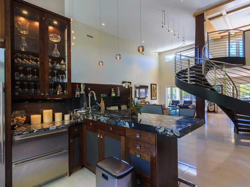 Gables by the Sea! only 5 houses on the street, no neighbors across the street, Private, quiet, all renovated. This stunning waterfront villa has it all. A boater's paradise w/a newer 85ft dock, lift & pilings, pool. Walk into 18ft ceilings in living rm, granite-top bar w/ wine cellar, lots of light, open spaces, impact glass all-over, Lutron lighting, porcelain flrs, kitchen w/ quartz countertops, family rm, living rm has a stunning floating mahogany stainless steel staircase, which is a piece of art.