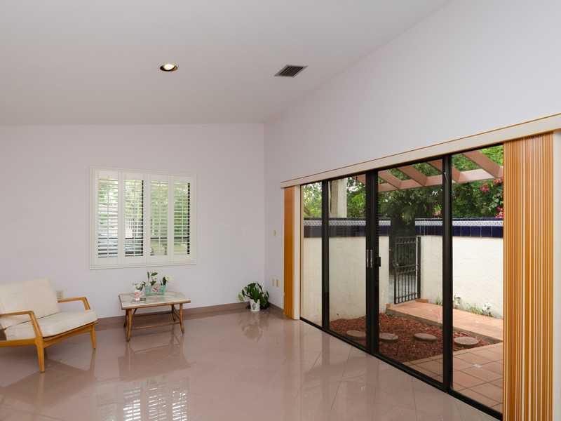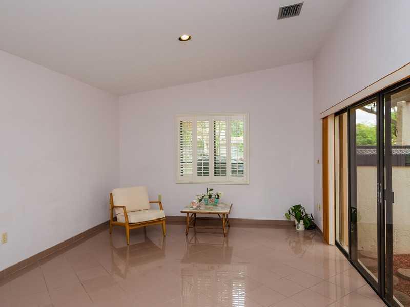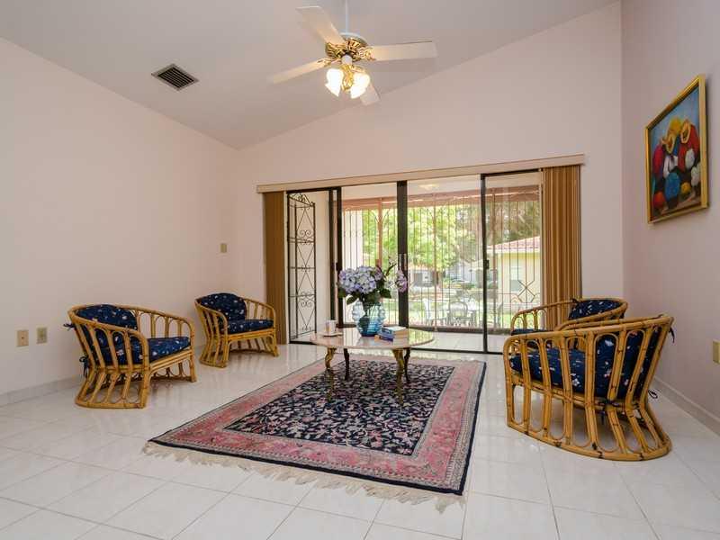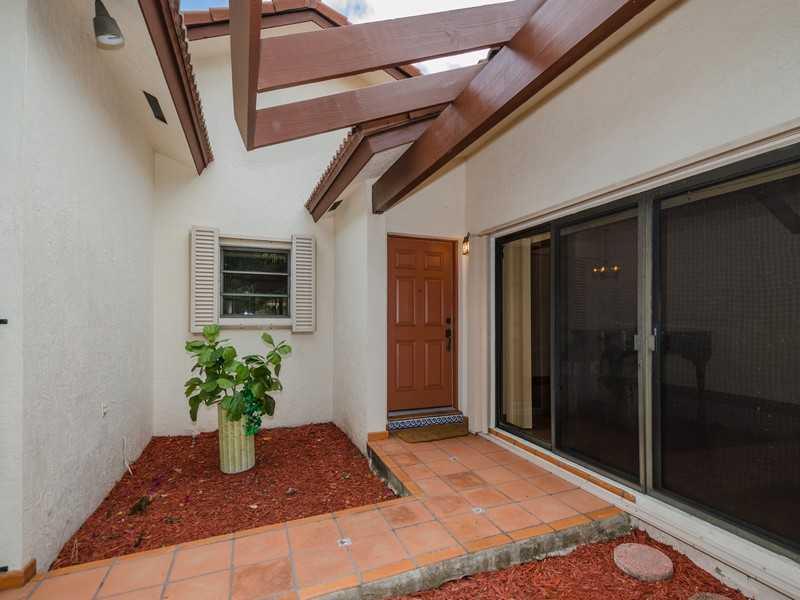 Classic 1980's home with great curb appeal and private entry courtyard set on a quiet, low traffic, tree lined street. Nicely distributed floor plan, open kitchen, large living room, family room, split plan bedrooms, with plenty of natural light. Large ma ster offers a generous size walk --in-closet. Sliding doors open to private porch. Featuring neutral tiles, vaulted ceilings, 1 car garage and accordion shutters. Meticulously maintained by original owner, it's a beautiful home in a quiet neighborhood.