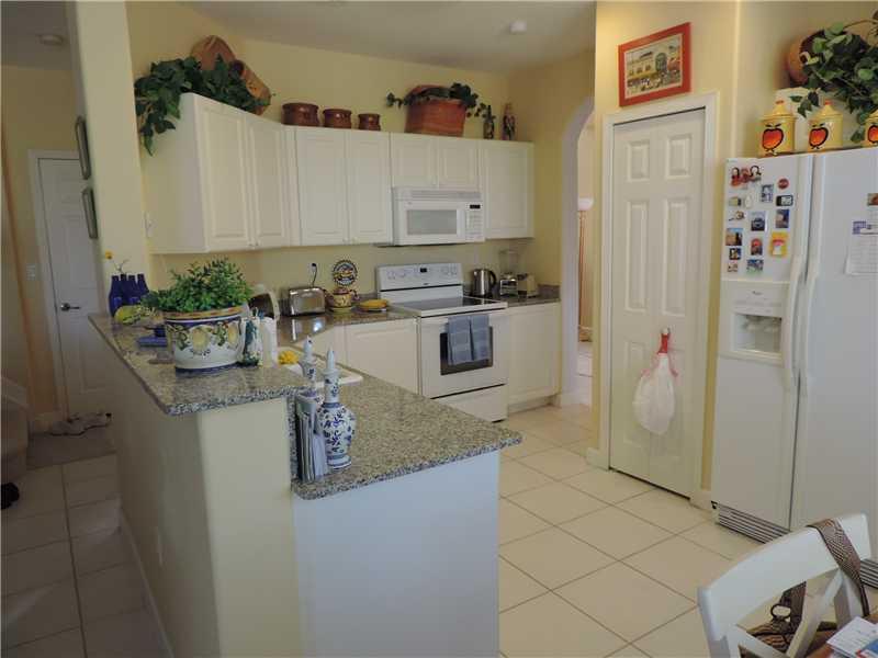 Fabulous coach home in prestigious community fo Costa Bella. Tile floor throughout downstairs. Formal living room, dining room, large eat in kitchen with granite counter tops over looking family room, large brick paver patio with nice landscaping, accordi on hurricane shutters. Four bedroom was open next to master bedroom (easy to convert back) could be used as an office, baby rooms; master bath with dual sink, bidet, roman tub and separate shower, walk-in closet with built in organizer.