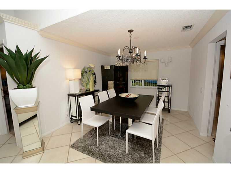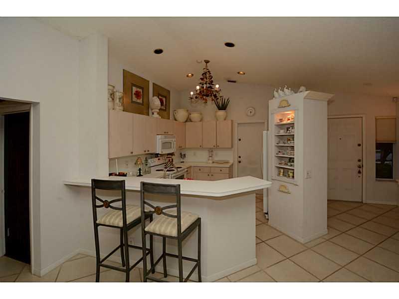 Fabulous 3/2 one story w/serene LAKE views, 2 car garage, note that the wall to 3rd bedroom is not up & room is open to living area (currently used as a formal dining room), tasteful designer touches (built-in desk, crown molding, paint etc), large neutra l tile on the diagonal, hurricane shutters & new garage door, a/c water heater appliances less than 3 years old, steps to community pool & play area, gated