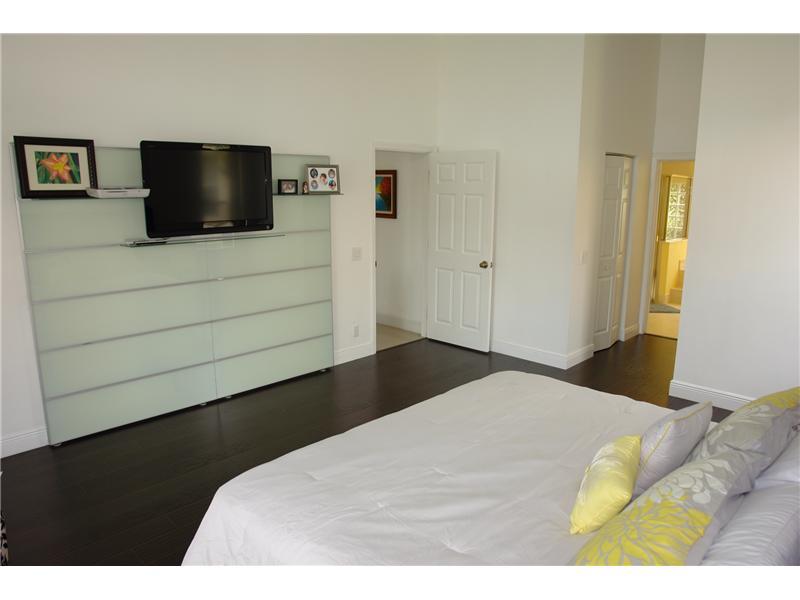 4/3 home loaded with upgrades, sits on beautiful & relaxing lake front lot. Sought after Carriage Pointe community A+ Schools, this house features S/S appliances, hardwood cabinets, brand new gorgeous ceramic tiles that resemble marble. Rarely available triple split floor plan w/3 car garage on wide lake, over sized master suite w/his & her big walk-in closets, sep. vanities, glass block window & more. Lots of natural light. Call LA