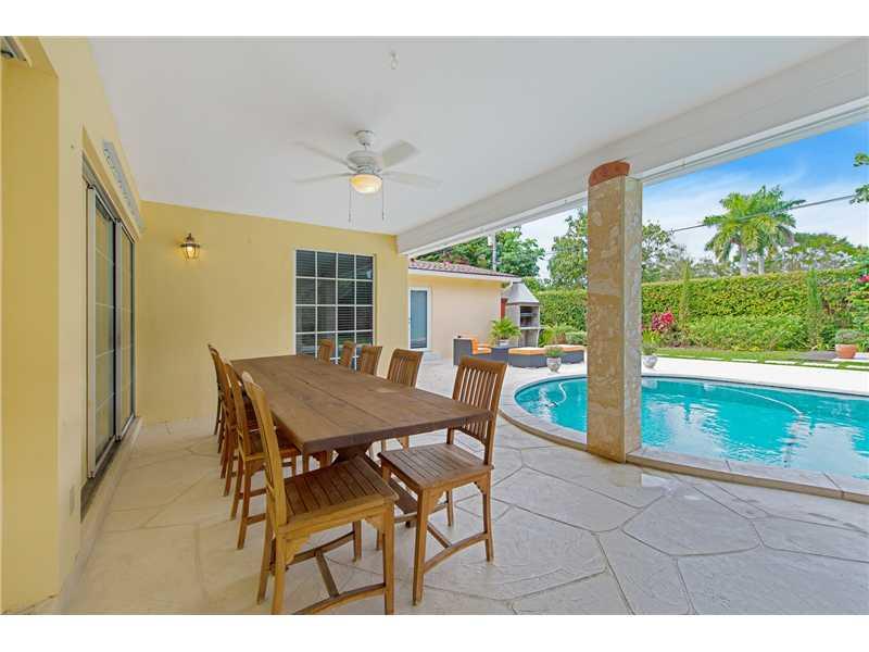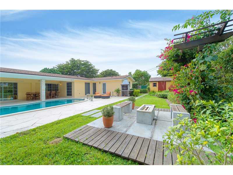 Beautiful gardens meet bright interiors in well-maintained Pinecrest home. Professionally renovated landscaping, split floor plan provides informal space for family & formal space for entertaining. Spacious living/dining room flows into professional kitch en w/Thermador appl, wine cooler. Captivate guests with new fire pit, & Argentinian parilla BBQ surrounding the pool. Work out in the fully equipped gym & sleep among dark wood & marble. Appreciate the serenity of a natural oasis thru out this home.