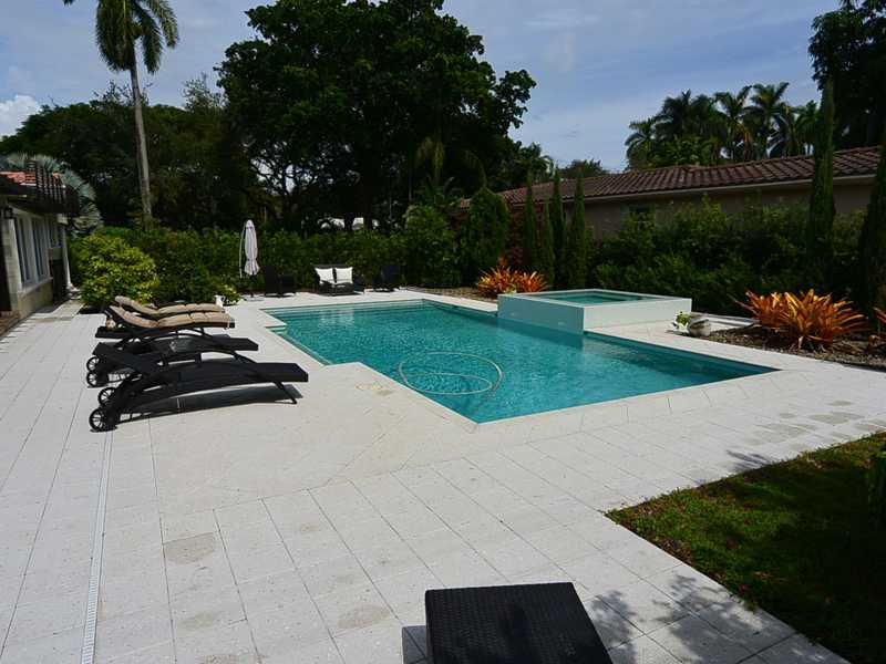 Exquisite remodeled home on a beautifully double corner lot in the lakes district. Marble floors throughout,large family room opens up to a spectacular view of the new heated CO2(carbon) pool area with an infinity heated spa that overflows in the pool. In frared sauna under the covered pergola. Water system, filter and conditioner in house. Ionized water in the kitchen(life source water). New AC, plumbing, electrical and roof. Custom built impact windows and doors. Alarm and camera system. Fenced in yard.