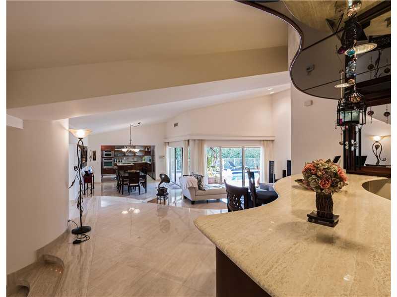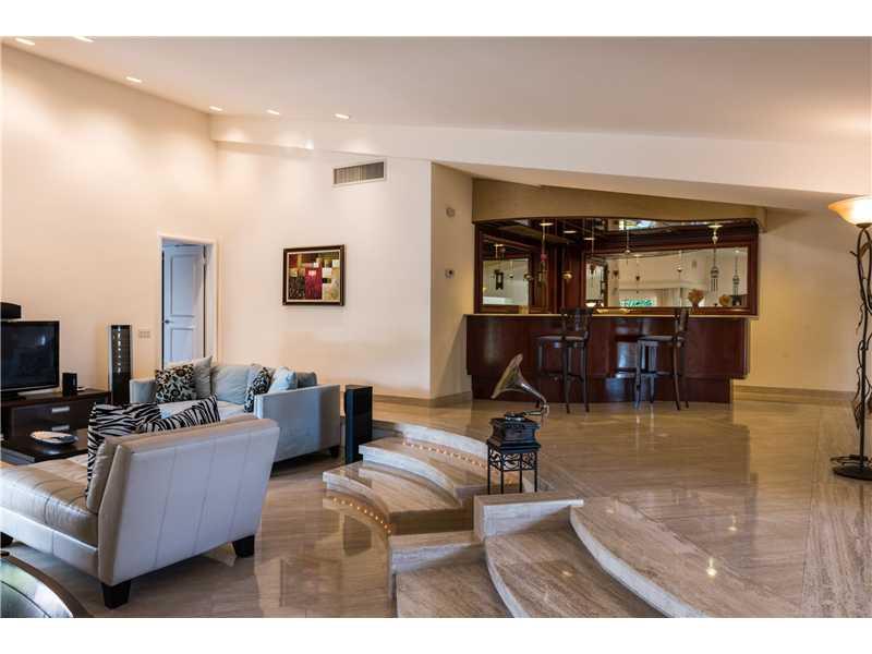 Pristine contemporary waterfront luxury three-story home in guard-gated Sans Souci neighborhood with no fixed bridges and easy ocean access. Stunning appointments include volume ceilings, marble and wood flooring, gourmet kitchen, 30-ft solid wood spiral staircase, rosewood wetbar, master suite with his/hers baths surrounded by water. Great pool and patio with tropical landscaping make for fabulous outdoor space for entertaining. 65-ft dock with 15,000-lb boatlift. This is true Florida living!