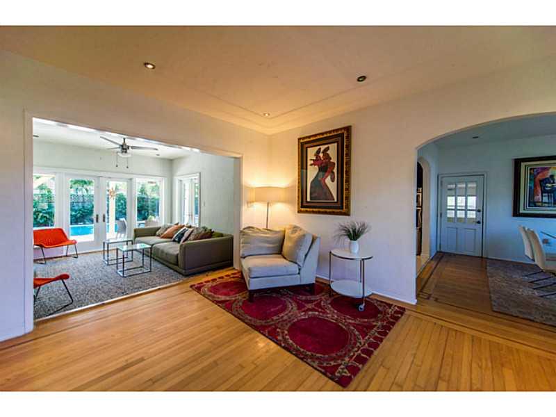 Impeccable beauty with a serene atmosphere. This saltwater pool home located in the heart of Morningside offers a bright, open floor plan perfect for families and for entertaining. Both full bathrooms have been updated completely. Original hardwood floors throughout, and completely updated kitchen with stainless steel appliances. Garage was converted into a 4th bedroom, den or office. New washer and dryer. Tankless water heater. Outdoor shower next to pool and jacuzzi. Gated entry. Close to everything!