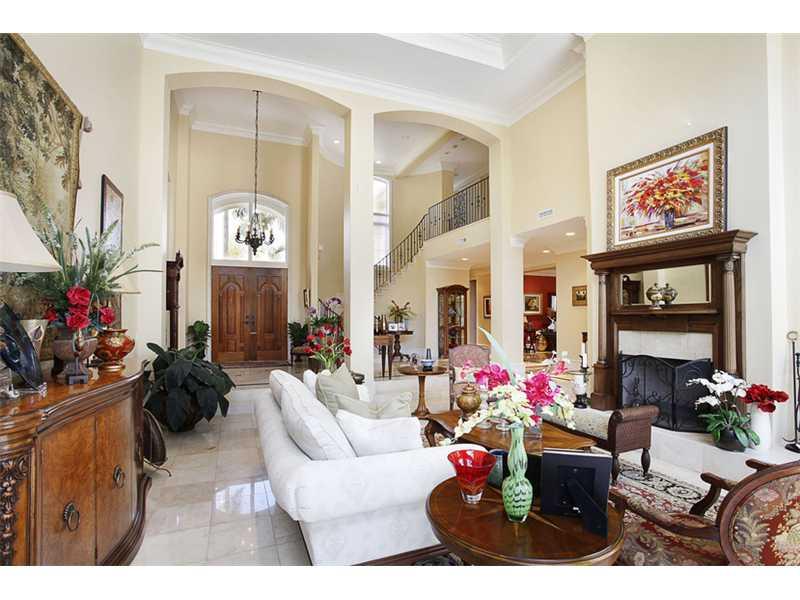 Beautiful, palatial home in gated S Gables cmnty on peaceful lagoon & quiet cul de sac. Marble/wd flrs, impact wndws/drs, formal liv & din rms w/coffered ceilings, fam rm, wet bar & add'l family rm upstairs are just a few of the special features of this h ome. Exceptional master ste incl office/gym, elegant bath w/double sinks, spa tub & sep shower. Outside the covered patio & summer ktchn prove a perfect spot to enjoy the pool/jacuzzi & the gorgeous, natural hammock leading to dock, beach area & lagoon.