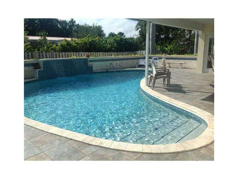 Fabulous Location!Great curb appeal! Large 4 bed/4 bath w/1 car garage.Heated pool w/waterfall. Updated kitchen w/granite counter tops,back-splash & stainless steel appliances.Large living room w/fireplace & crown molding.Original custom tile throughout.T ankless water heater.Newer bathrooms.Spacious pool area.Fenced backyard.Large driveway done w/coral rock & Chicago brick. Large Master Bedroom with french doors open to the pool.Master bath w/granite counter tops.Brand new tile roof & all impact windows.