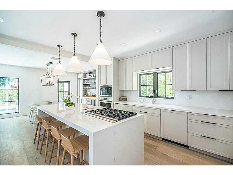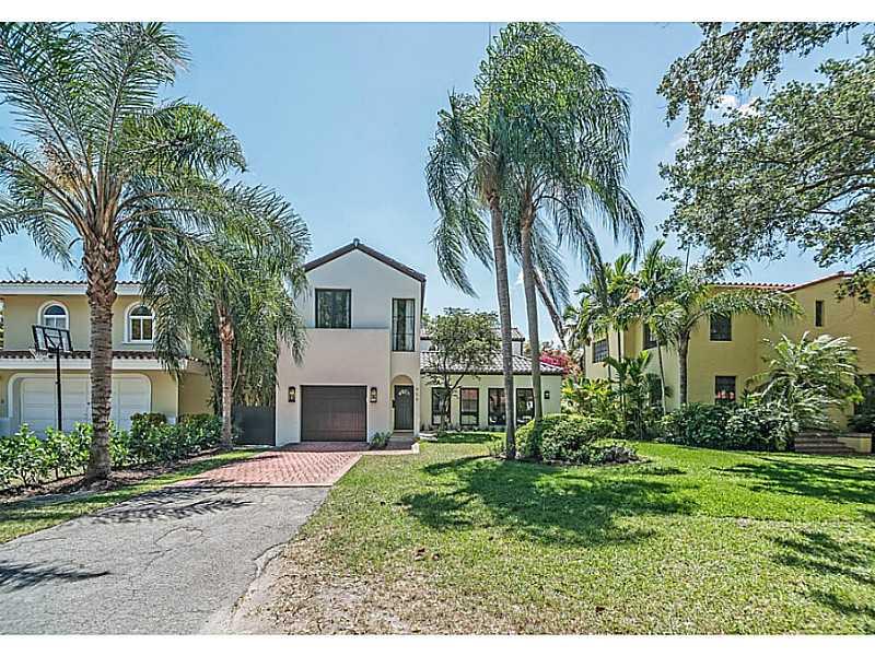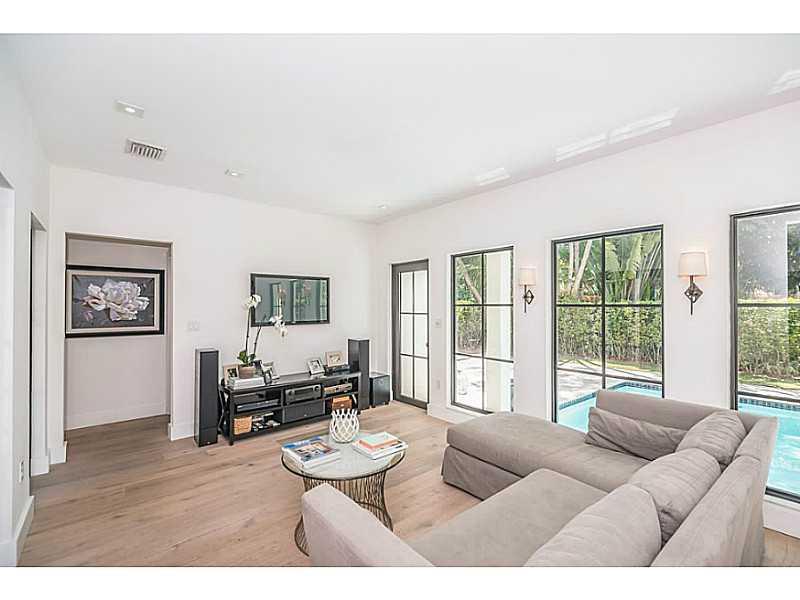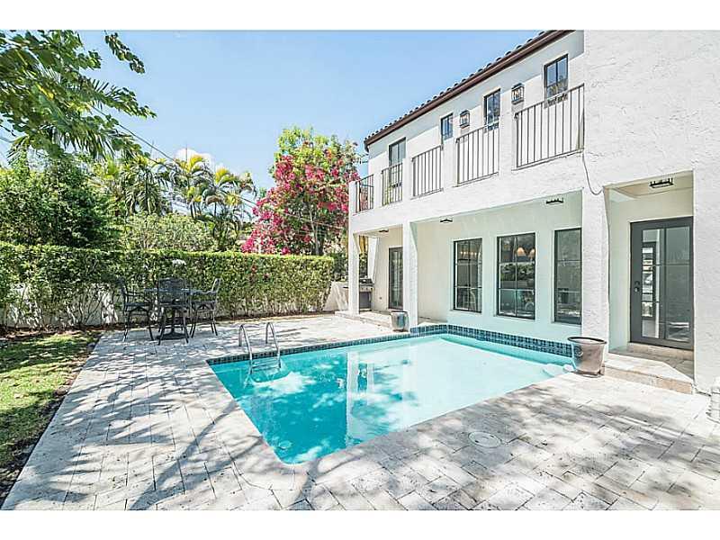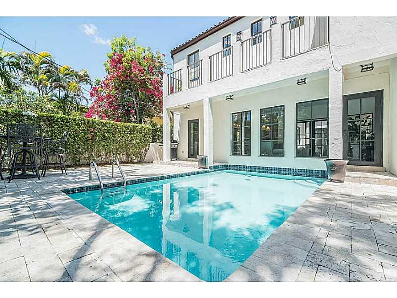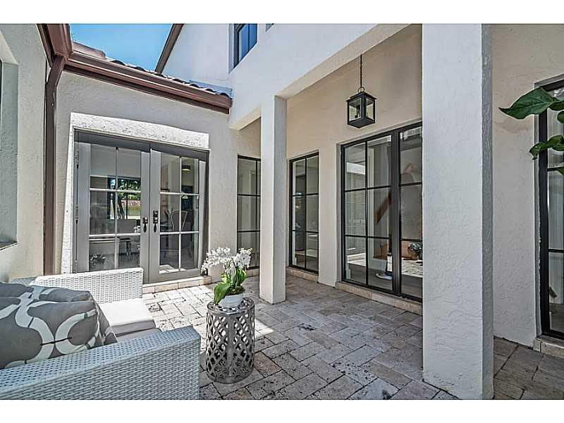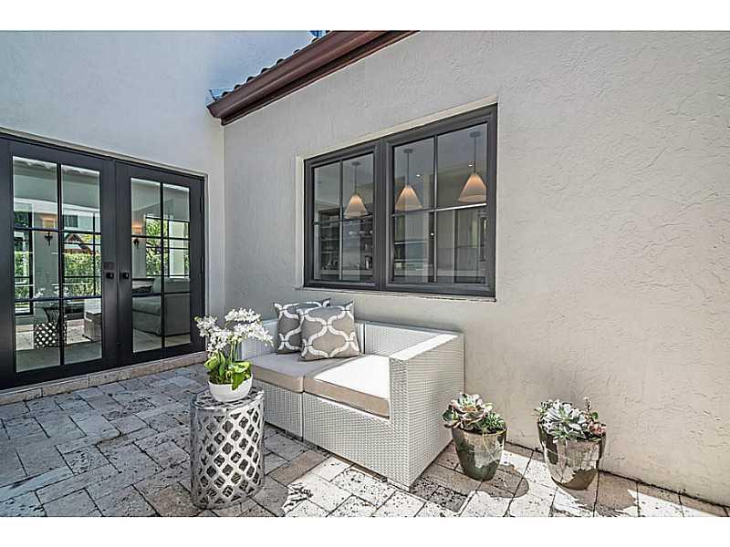 Beautiful & charming 4 bdrm home filled with streaming sunlight. Superb Coral Gables Golden Triangle location with great curb appeal on a tree-lined street. Stunning new kitchen with 6 burner Wolf gas range, Bosch dishwasher, Sub-zero refrigerator & gorg eous marble counter-tops. New roof, new AC, new water heater, new impact doors & windows. Gorgeous center atrium adds to this homes special appeal. Three spacious bedrooms on 2nd floor. Interior laundry room, pool and one car garage.