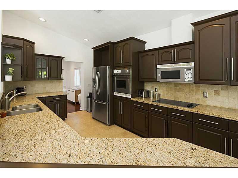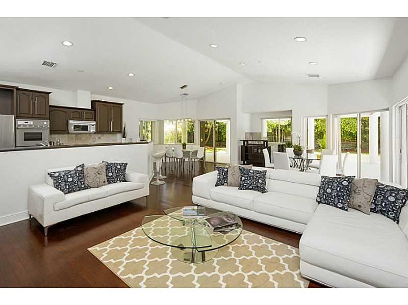 Stunning and open Pinecrest home with 5 bedrooms and 4 1/2 baths on a quiet street. Ideal for entertaining, this home has it all: vaulted ceilings, huge windows and sliding doors with sunlight pouring in, remodeled kitchen, new bathrooms, Brazilian Oak w ood floors, a two-way fireplace, a pool, and a huge covered patio. Also features a separate attached in-laws/guest entrance with 2 bedrooms, a bathroom, and a den! Outside is beautifully landscaped, with many fruit trees and over 50 incredible palm trees!