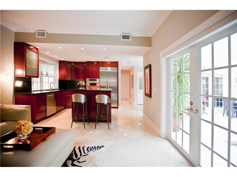 Immaculate Chateau in Coral Gable's French Village. All the finishes and detailing you would expect in a high end home. 3 beds/2.5 baths, and 1 car garage. Features: Impact windows & doors, marble floors thru-out, vaulted ceilings, lovely and private pati o with an inviting swimming pool, generator, crown molding thru-out. 2005 cherry wood kitchen cabinets, SS appliances, granite countertops, low voltage lighting, indoor laundry, tankless water heater, large Master with walk-in closets, Amazing master bath