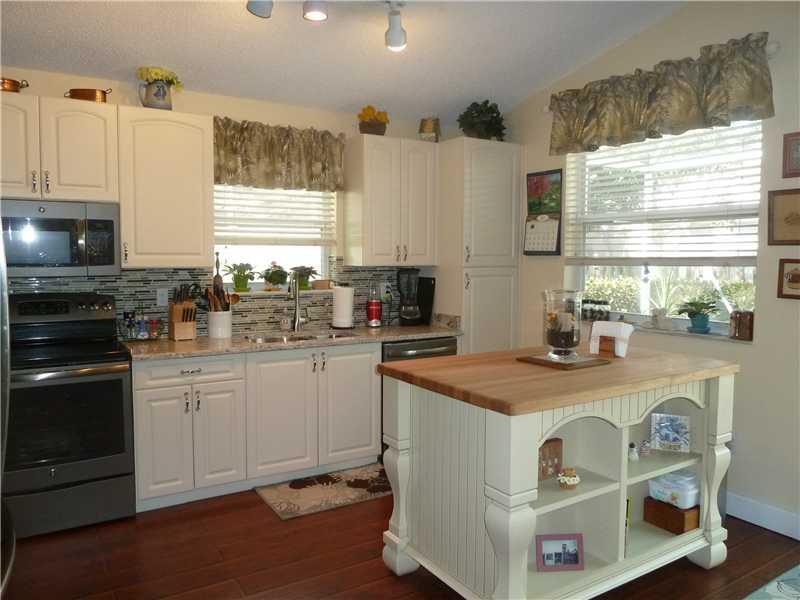 Picture perfect Canary Bay home located in prestigious Towngate community! Natural light floods into this residence highlighting the gorgeous kitchen with granite countertops, tile backsplash and slate appliance package. Rich colored, wood-laminate floori ng laid throughout main living areas. Both bathrooms are beautifully renovated and a/c only 3 years old. Superb floor plan has family, living, and dining rooms with vaulted ceilings located on a quiet, private lot with lanai and fenced-in yard.