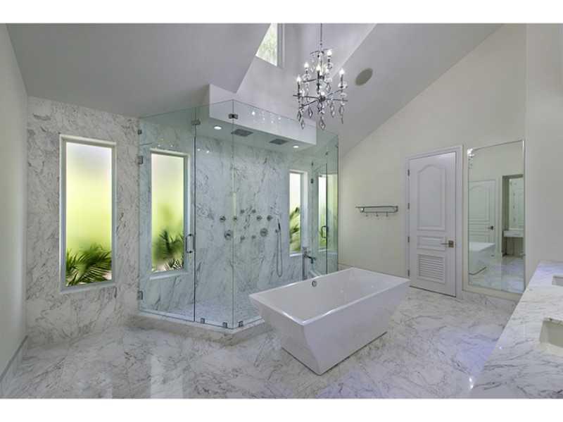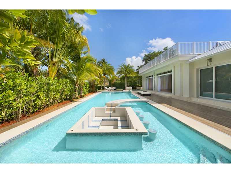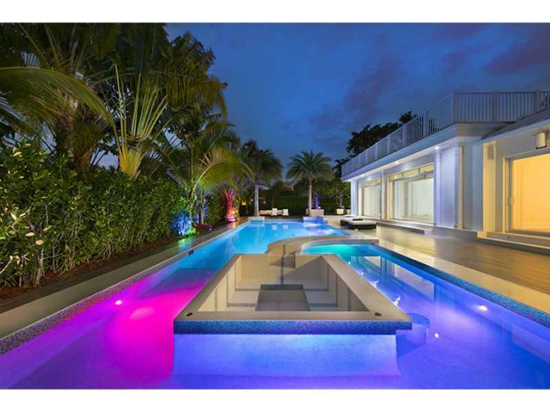 Stunning new modern, Key West style house on water in guard-gated high security Baypoint. Six bedrooms, six 1/2 baths. Gourmet kitchen with subzero & Wolf appliances. Vaulted ceiling throughout living, dining, family room, master bedroom, bathroom and cl osets, guest bedrooms, kitchen and garage. Large theater/family room. Telescopic glass doors leading to outdoor entertaining area create outdoor/indoor living. Spa-like master bathroom with his/her closets. Lushly landscaped 120' waterfront with new dock.