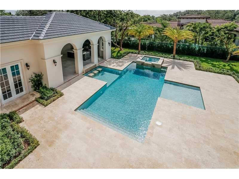 "Chateau Marseille" is a French influenced, newly constructed estate-sized home on a builder's acre in much sought-after North Pinecrest. Offering 7 BR (masters on each level), 8 full BA + 2 half BA, office, theatre/media room, roofed summer kitchen/enter tainment area, 3-car garage + motor court, 2 wood-burning fireplaces, elevator, 1100-bottle wine cellar, 6-station Smart Home system, concrete shake roofing system & a climactic, sun-drenched pool with swim-up bar + jets. S.F. per plans.