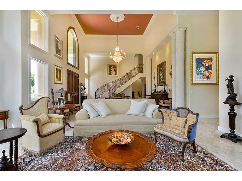 Exquisite custom built home on nearly 1-acre lot. This 2-level home features 22 ft. ceiling throughout & 42 ft. ceiling in formal dining room. Gourmet kitchen with large breakfast room. Extraordinary family room leads to covered terrace overlooking beauti ful grounds, pool & spa. Chic Master Bedroom appointed with seating area, his/hers walk in closets and his/her Luxurious baths. This residence offers 7,497 adjusted sq.ft of beautiful living areas. Luxurious living at its best on this private estate.