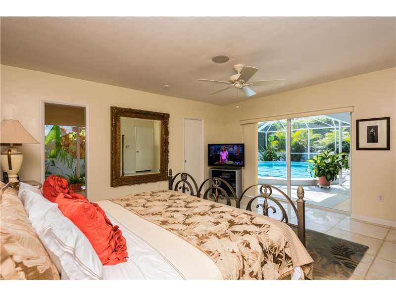Light, bright and airy 3-bed 3-bath Mid-Century Modern home in gated Sans Souci neighborhood! On a canal only seconds from Biscayne Bay. Open living area has gourmet kitchen with wood cabinets, granite counters and stainless steel appliances. Large master suite with dual sinks and sunken bathtub and shower. Lots of windows and doors unite the interior with magnificent pool area and lush tropical landscaping. Cuban tile, impact windows, 2-car garage. No fixed bridges. Entertain in true Florida style!