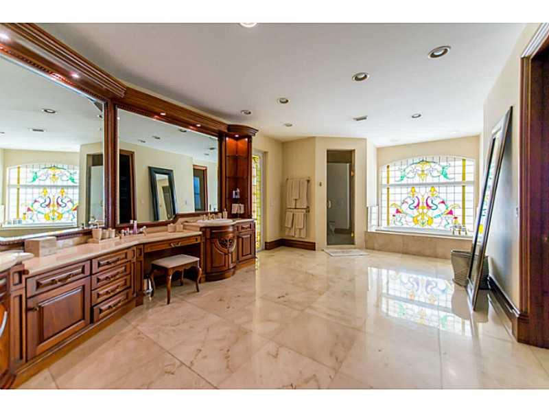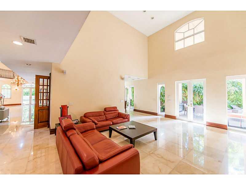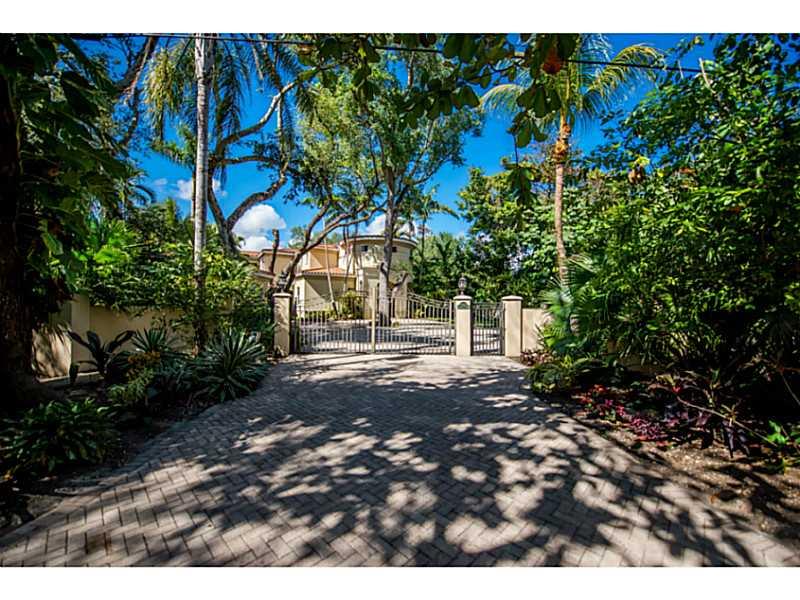 Elegant European style gated villa on oversized lot in South Coconut Grove. Enter into a grand foyer with dramatic staircase & double height ceilings. Light filled living spaces with the finest finishes throughout including Brazilian hardwood & marble flo ors, mahogany doors and impact glass. Expansive main floor master suite & 3 upstairs bedrooms w/ en suite baths. Downstairs staff quarters. French doors open onto covered terraces overlooking 40' heated lap pool surrounded by lush tropical garden.