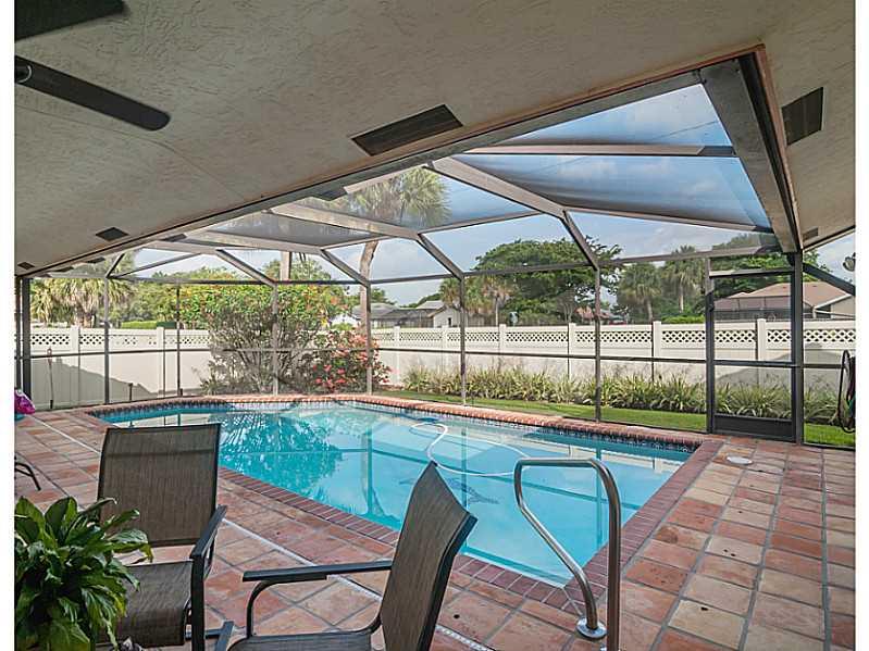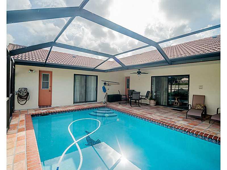 Beautiful, rarely available Eastsider Model. 4/2 with pool in quiet neighborhood. Everything updated since the new roof in 2003. New kitchen - 2007, new Trane 4 ton AC in 2009, dishwasher, washer/dryer, stove in 2012, Diamond Brite pool in 2013, with n ew pool filter. "Wood" tile installed in 2013. No carpets anywhere. Nice corner lot with enclosed pool and lovely Mexican tile on pool deck. Alarm system, anti-rust sprinkler conditioner. Just up the Cul de Sac from Paul Barre Memorial Park.