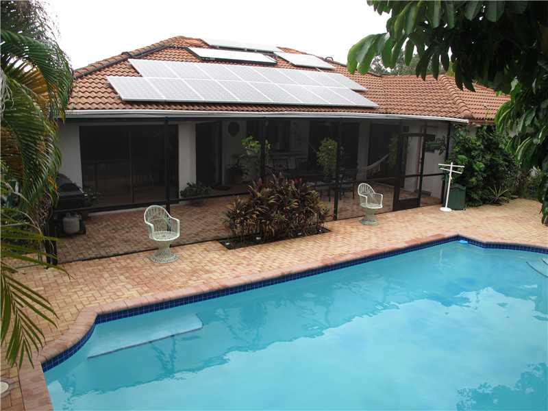 Updated Maplewood pool home in desired subdivision. Beautiful 5-bed 2.5-bath home with 2,584 SqFt gross living area and a partially enclosed 2-car garage with office and full bath, 2-zone central A/C system, 2-separate solar heater systems for pool and dw elling. Solar power system with NET-METERING (FPL) buys back or offsets power produced by the electric solar panels. Upgraded solid wood kitchen cabinets and granite counters, baths with granite and marble tops. Fully landscaped yards with fruit trees.