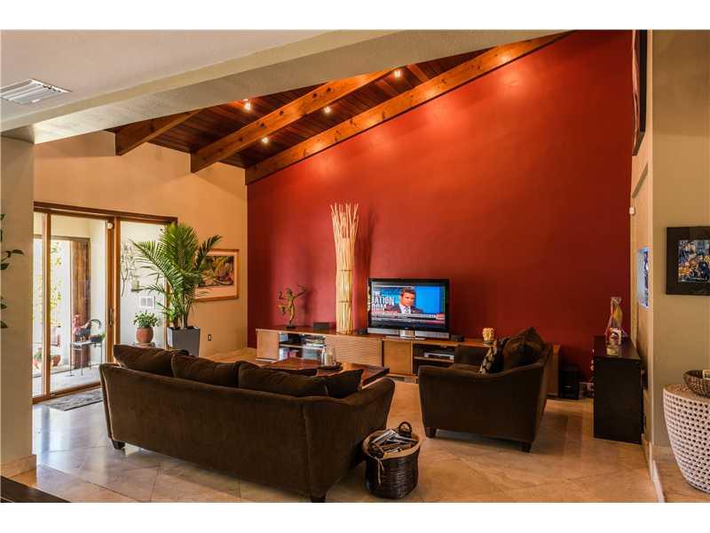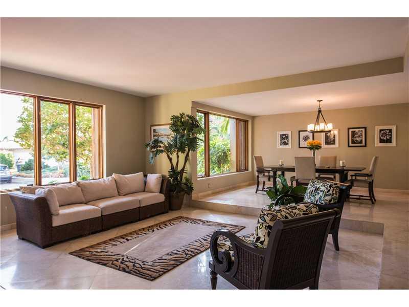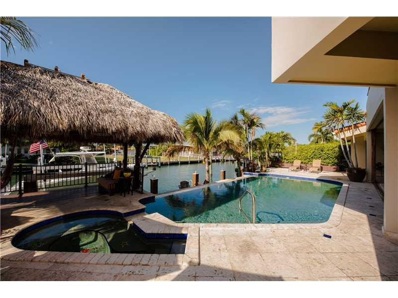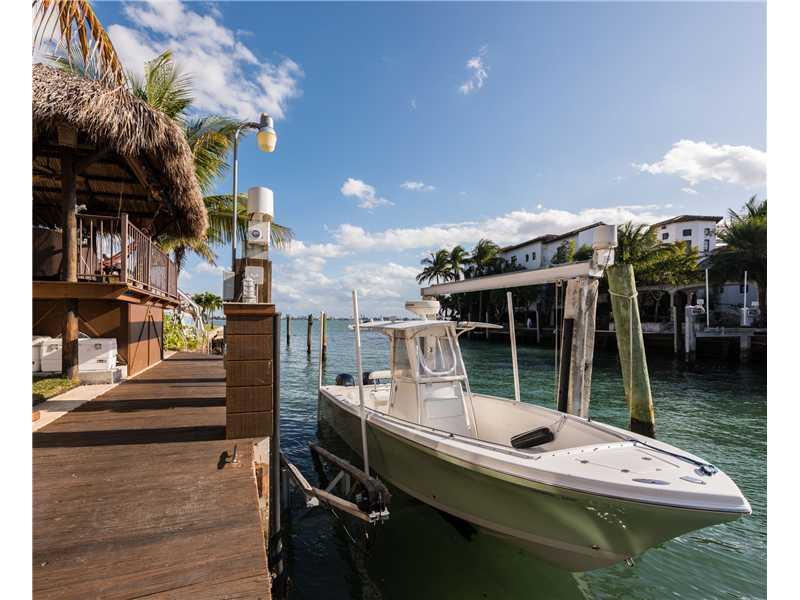 Smashing bay views w/ protected deep water for your boat from this 4 bedroom, 5.5 bath Florida Contemporary waterfront home in luxurious guard-gated neighborhood. One lot off Biscayne Bay w/views throughout, open airy interior w/soaring ceilings, marble t hroughout, open state-of-the-art gourmet kitchen, all updated baths w/top-of-the-line fixtures & fittings, luxurious master suite w/balcony overlooking the bay. Negative edge pool, cabana bath, tiki hut, dock, boatlift, fish station. 10 mins to the ocean.