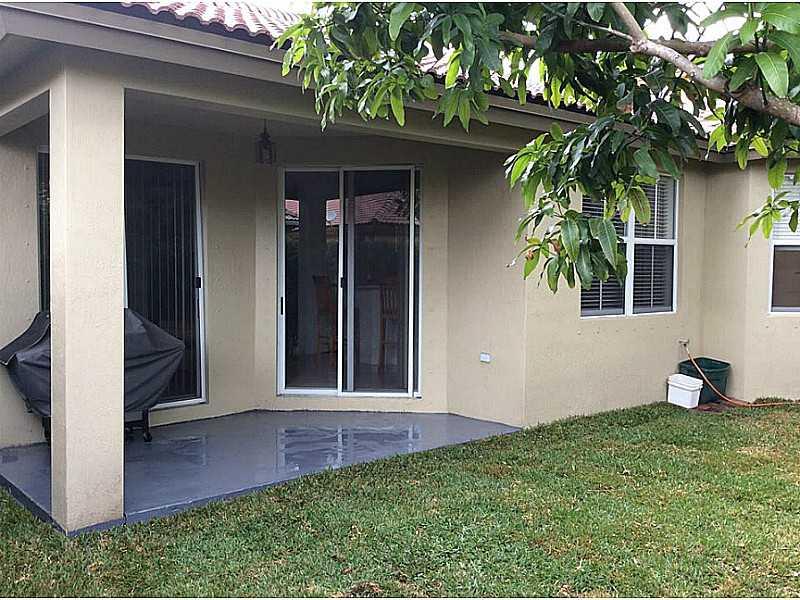 Home sweet home. Beautiful home with double doors at entrance and ceramic tile floors. Blocks from Turnpike. Excellent community. Clean and quiet. Spacious rooms with nice flow. Split bedroom plan. Only 10 years old. Nice patio with lawn, coconut, an d mango trees. HOA fee includes membership to Island at Doral Clubhouse, with pools for kids and adults, jacuzzi, tennis, basketball, gym and private rec rooms. Fenced yard.