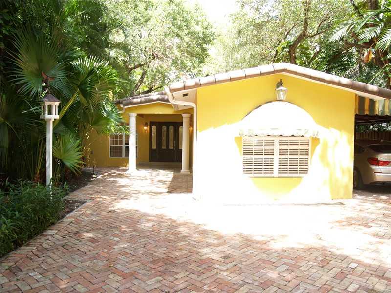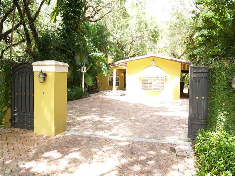 East of US1 in Coconut Grove. Gated and private is this completely renovated single family home. Marble floors, marble bathrooms, real hardwood floors in bedrooms, updated lighting throughout. New roof in 2013,under warranty. S/S appliances and wine chill er in kitchen. 4th bedroom has a private entrance with a full bath. Beautiful moldings throughout. Chicago brick driveway, carport, spacious outdoor entertaining area. Just minutes from Merrick Park and UM. Surrounded by a tropical oasis.