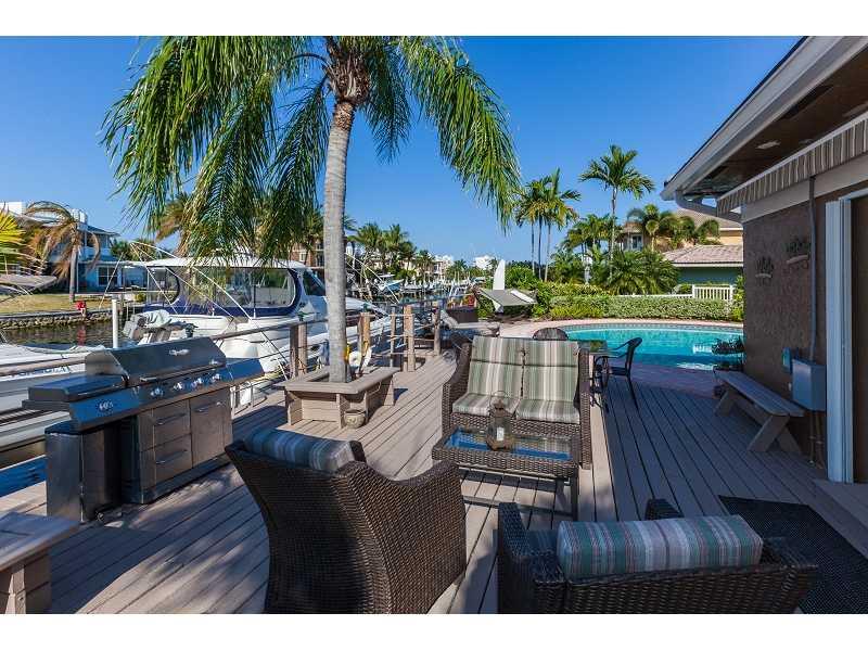 Bring your yacht, no fixed bridges! Enjoy entertaining in this fabulous renovated waterfront home with volume ceilings, Travertine flooring & a split floor plan. Large master suite. Extra-large heated pool. This home comes equipped with a backup generator , hurricane shutters, wood burning fireplace, central vac system and so much more. Located on a cul de sac that ends at the intercostal, this lovely neighborhood is close to great shopping, restaurants, A+ schools and beaches.