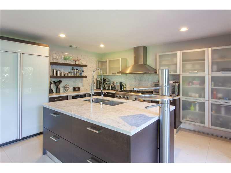 Magnificent totally renovated contemporary home. New European baths, two new AC units, amazing chef's kitchen, top of the line appliances, gas range, grill, griddle. Great bathrooms, limestone & Starck fixtures. Private walled in garden for privacy with l arge Koi pond & 1000+s.f. hardwood deck in rear. 20' ceiling, limestone, wenge and glass throughout. State of the art garage with show-room worthy flooring & a wall storage paneling system.