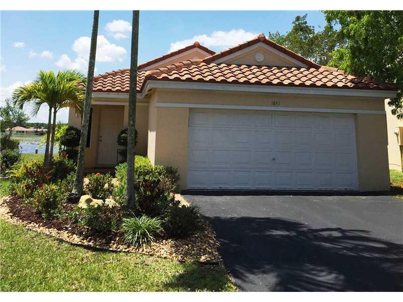 REDUCED! LIVE IN WESTON IN THIS AFFORDABLE AND IMPECCABLY MAINTAINED 3-BED 2-BATH, 1-STORY HOME WITH A 2-CAR GARAGE AND A PEACEFUL LAKE VIEW; 24X24 REAL SLATE FLOORING; NEW ROOF 2012 & NEW A/C; OPEN FLOOR PLAN WITH VAULTED CEILING; PRACTICAL KITCHEN WITH LAKE VIEW; COMMUNITY POOL WITH PLAYGROUND AND VOLLEYBAL; PERFECT ACCESS TO I-75 & US 27; THIS NICE H0ME WILL DEFINITELY SATISFY YOUR MOST DEMANDING BUYER!