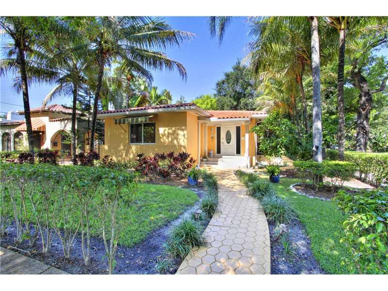 Charming home, located on the corner of two beautiful, peaceful, tree-lined streets in Coral Gables. Bright & cheery open spaces flooded w natural light thru the impact windows & doors; wonderfully updated eat-in kitchen w double ovens & plenty of cabine t storage; spacious bedrooms each w large closet. Enjoy the outdoors on the charming back patio looking toward manicured lawn w automatic sprinkler system. Wood floors, laundry room & a one-car garage complete this delightful home.