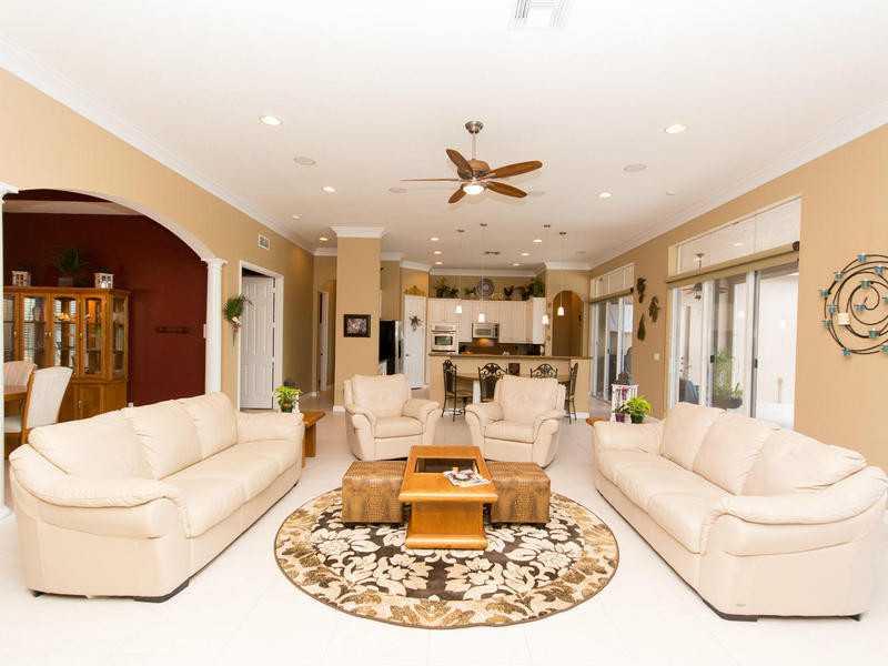 Gorgeous waterfront home on 1.2 acre lot, cul-de-sac, 5 Bedrooms + Den, 3.5 Baths, triple split layout, 3 car garage, gourmet kitchen w/island,granite counters,custom granite table, stainless steel appliances,crown molding,indoor/outdoor surround sound, i ntercom and upgraded alarm system, accordion storm shutters, salt water pool with hot tub, waterfalls & LED color lighting, tumbled marble patio. Many more upgrades, must see to appreciate! Centrally located in "A" School District.
