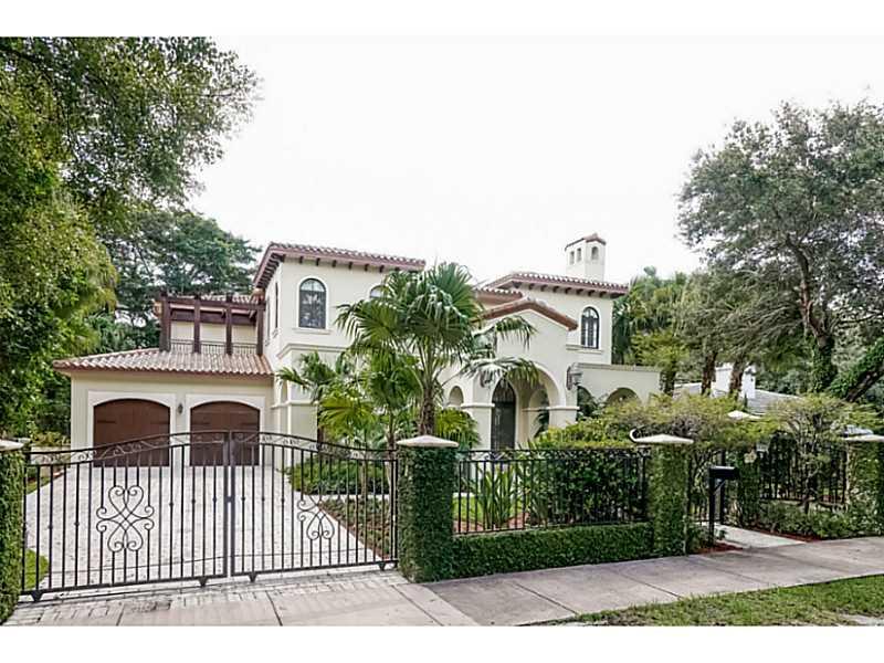 Majestic home on historic and prestigious Alhambra Circle. Built in 2006 featuring 6BR/6.5BA, elegant and quality high-end features coupled with soaring ceilings throughout. Spacious living areas, formal living and dining rooms, library, gourmet eat-in ki tchen, marble and wood floors throughout, and hurricane impact glass. Beautiful & covered patio area facing heated pool on a large exquisitely landscaped gated lot.