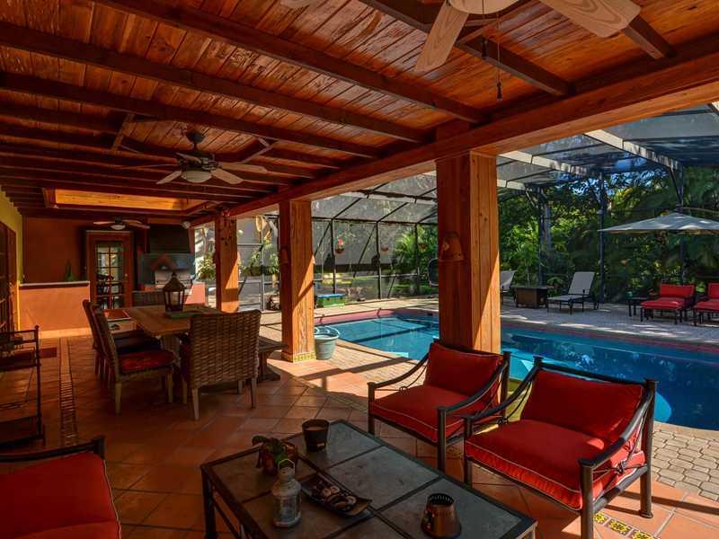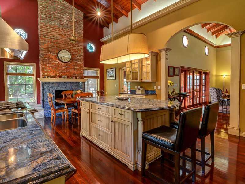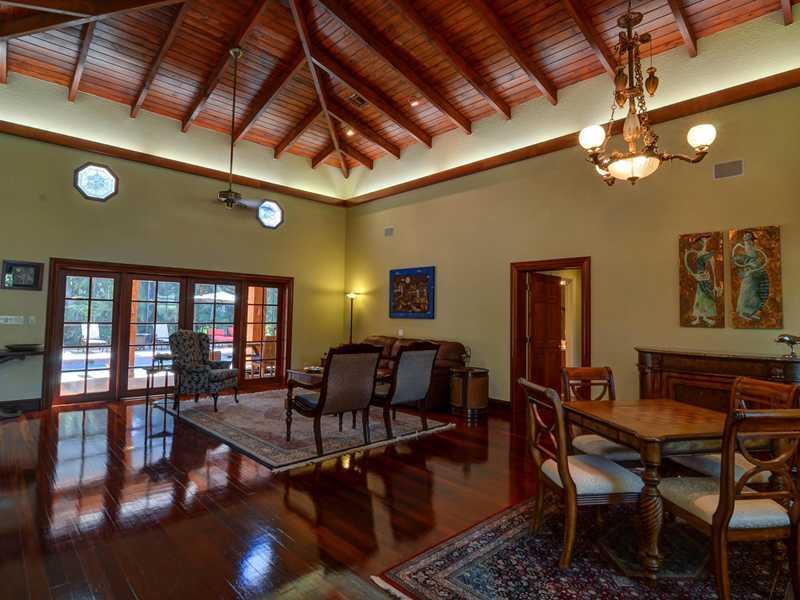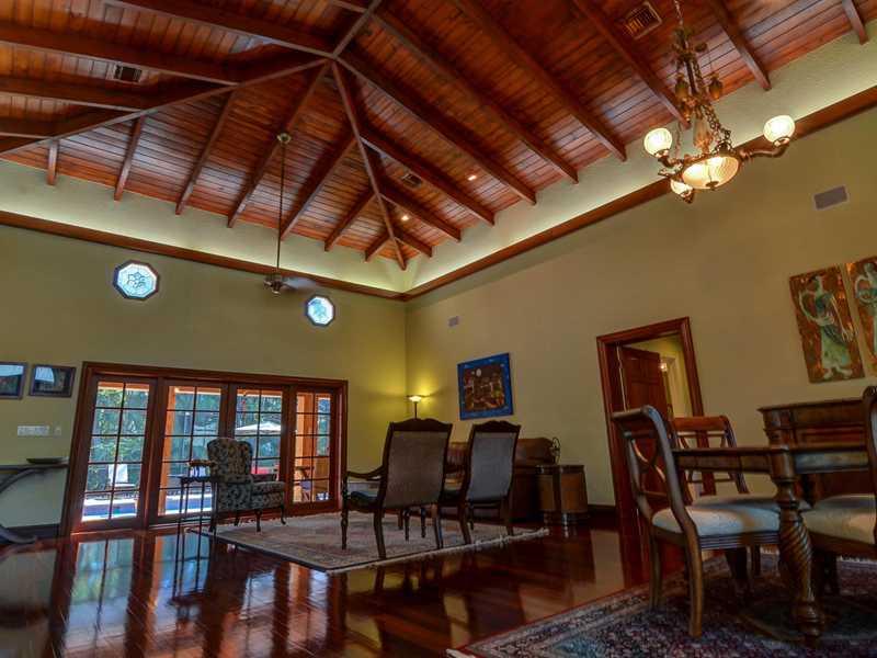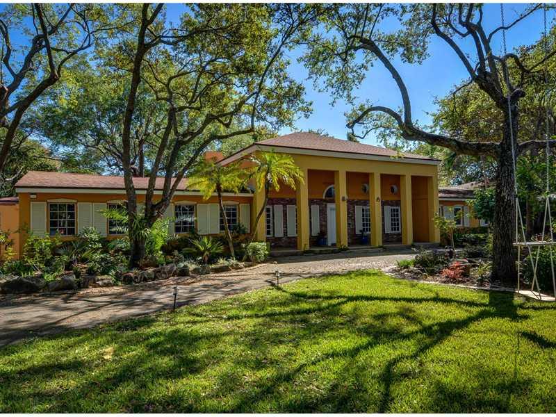 Located in a sought after Pinecrest neighborhood of winding & hilly roads, boasting lushly landscaped acre estates. Drive through the gated entry driveway to this classically designed home featuring stunningly high ceilings in the living areas & master be droom. Remodeled & additions made in 1989/90. The gourmet French country kitchen features wood cabinets, granite & fireplace. This acre plus property contains 35 mature live oak trees, palms and fruit trees, a butterfly garden & large screened pool/patio.