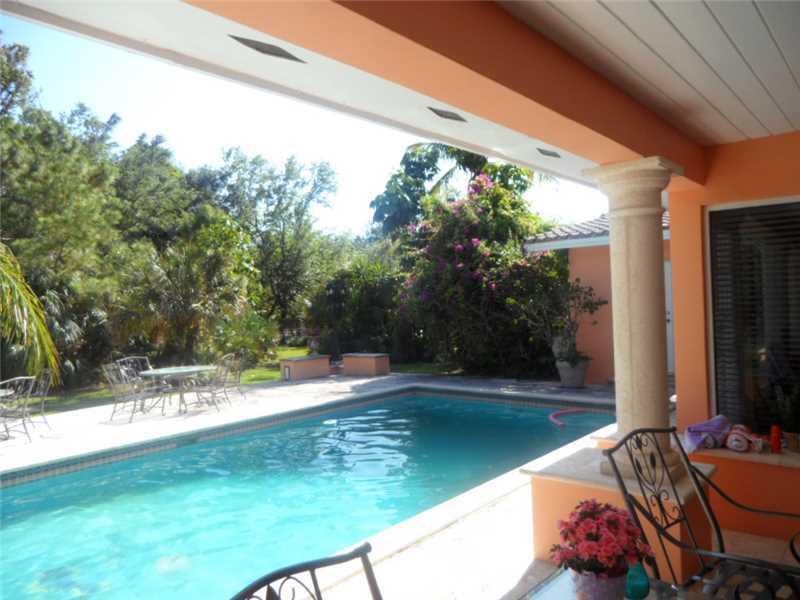 Pinecrest Home close to Pinecrest Elem! Corner, builder's acre*House set back w/large circular driveway & 4car porte-cochere! Side entry garage! Great entertaining home with french doors to a covered terrace & BBQ, wet bar and a larger than normal pool. 5 bedrms with bonus office/den within 5th bedrm. Remodeled granite kitchen,SS appliances,snack counter, overlooking Florida room. Dual sided fireplace and outdoor dining lanai! N/S basketball court(just shy of tennis ct size)!