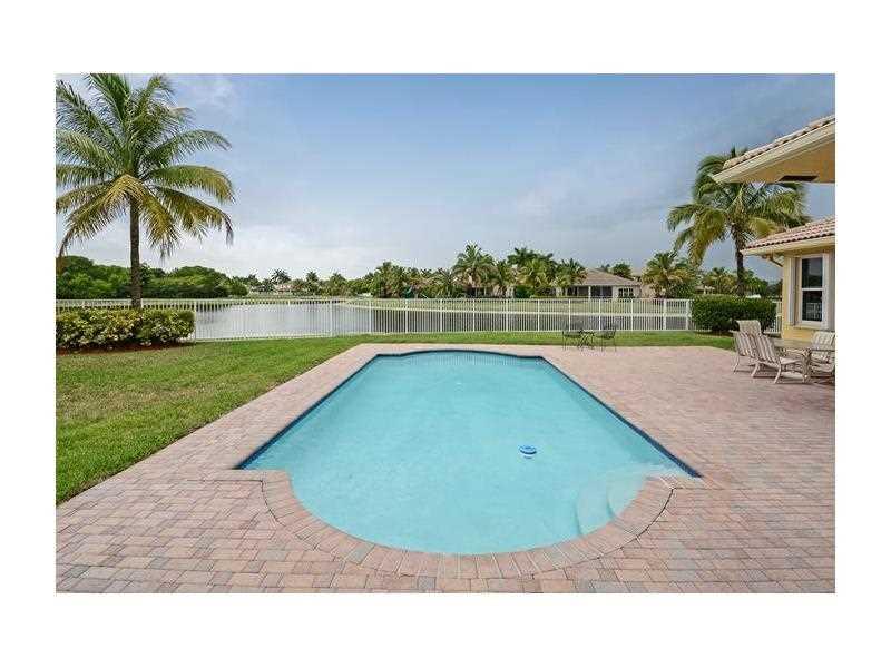 Large 16,800 sq ft cul-de-sac lot with wide lake views and sparkling blue pool makes entertaining easy! 5 BR, 3BA, home with 2 New AC's(2013), volume ceilings and accordions. This gated Weston community with "A" rated schools has large community clubhouse with 5 star resort like amenities including pools, water slides, miniature golf, basketball, soccer fields, mini snack bar, Tiki huts, playground and so much more! Spend the Summer, Holiday's and invite guest to your own resort like community club.
