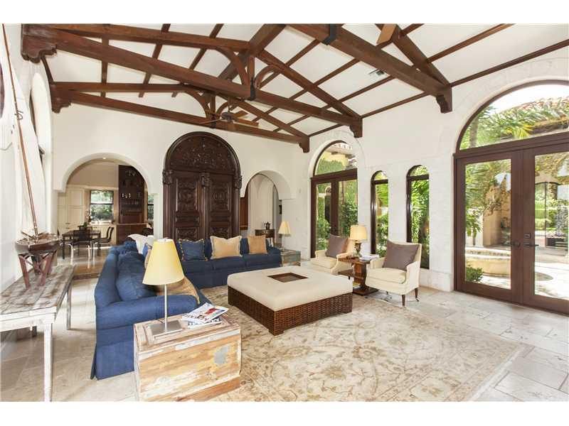 Spectacular ivy covered waterfront residence on prestigious guard-gated Sunset Island III, 156 ft of waterfront w/the most beautiful wide lake views & new large dock. Home offers spacious living room w/fireplace connecting to bright & light family room su rrounded by keystone lined walls & frames around arched windows & wood trestle ceiling, state-of-the-art kitchen w/granite-topped cooking island & breakfast area, sumptuous master suite w/3 walk-in closets, 2-sty guest house and heated pool. Very private.
