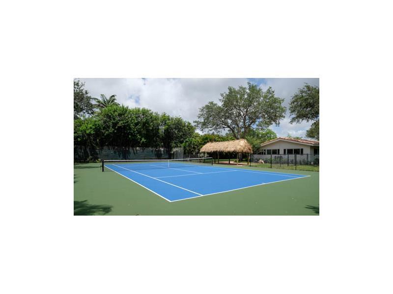 EXQUISITE! REMODELED 5/4 MODERN HOUSE WITH TENNIS COURT! OPEN SPACE CONCEPT WITH 32X32 PORCELAIN FLOORS THROUGHOUT. NEW KITCHEN WITH BREAKFAST AREA ,WOOD CABINETRY, THERMADOR APPLIANCES, OPENS TO SPACIOUS FAMILY ROOM. FORMAL DINING & LIVING AREA. GREAT MA STER SUITE W/SITTING AREA, HUGE HIS & HERS CLOSETS W/BUILTINS, SPACIOUS MASTER BATHROOM. SPARKLING POOL & ROOFED TERRACE, FENCED YARD, IMPACT WINDOWS, ALL HOUSE STAND-BY SYSTEM 45K GENERATOR W/1000 GALLON UNDERGROUND GAS TANK.