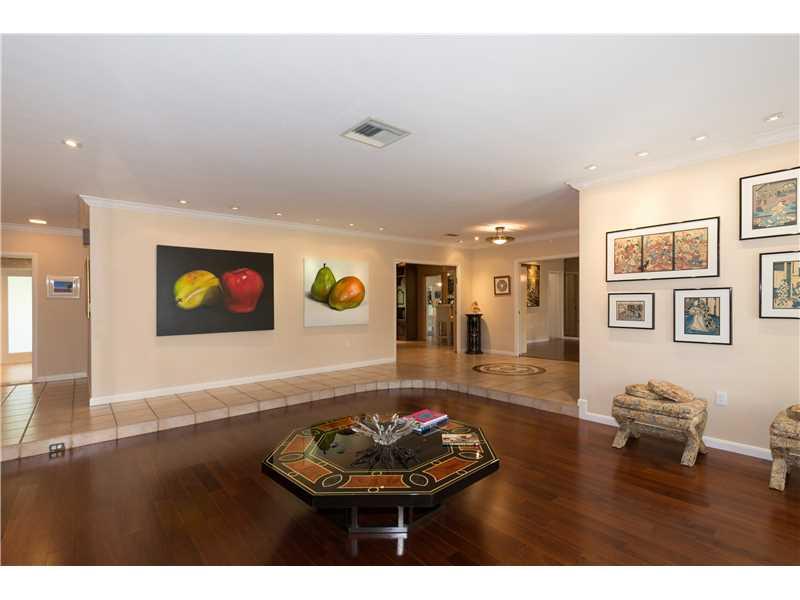 Beautiful & updated executive home in prestigious Pine Bay walled community with Gables security patrol. Open & airy. Elegant and gracious. Formal living and Dining Rooms with hardwood floors. New impact windows & doors. Fabulous family room with fireplac e & wet bar. Gourmet cook's kitchen. Cozy master suite. Gorgeous onyx guest baths. Spacious roofed/tiled patio with domed pool/spa. Large corner builder's acre with room for North/South tennis court. Truly Special!