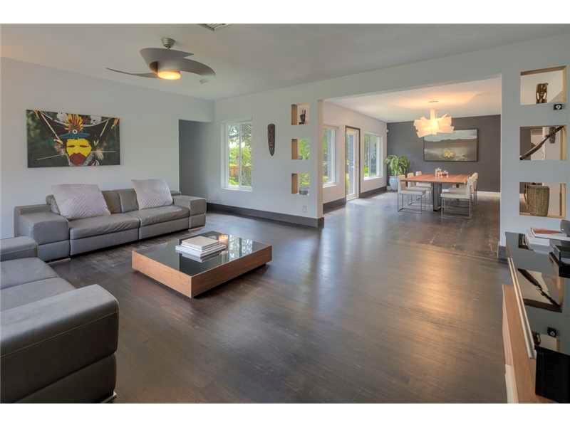 REDUCED ! MID CENTURY MODERN HOME IN THE MOST DESIRABLE LOCATION IN MIAMI-SHORES ACROSS FROM MULTI-MILLION DOLLAR WATERFRONT HOMES! THIS LUXURY RESIDENCE IS RENOVATED & STYLED TO PERFECTION. LUXURY FEATURES INCLUDE HIGH CEILINGS, WOOD FLOORS,OPEN KITCHEN WITH QUARTZ COUNTERTOPS, STAINLESS APPLIANCES, GAS OVEN AND NEW IMPACT WINDOWS. IT FEATURES AN ATTACHED 2 CAR GARAGE WITH ITS OWN BATHROOM. THIS HOME IS ON A CORNER LOT WITH PRIVATE FRONT AND BACK YARD FEATURING CUSTOM LIGHTING, IDEAL FOR ENTERTAINING.