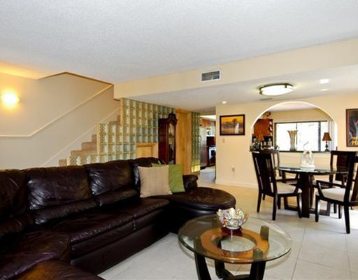 Immaculately kept corner town home in convenient Eastern Shores near beach and malls. New glamorous kitchen with wood cabinets - granite counter tops and granite topped table - all overlooking the canal. Kitchen opens to family room with custom wood bui lt-ins including a wine cooler. 18 x 18 beige tile floors downstairs and blonde wood in the bedrooms. Architectural block wall going up staircase and loads of storage. Very large deck ideal for entertaining. Front walled patio. *Furniture for sale!*