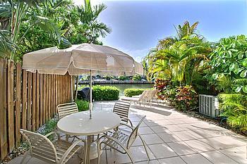 Spacious 2083 sq ft waterfront 3/2.5 townhome w/dock in the lovely community of Venetian Park. Perfect patio for bbq's & outdoor fun! 1st floor features a family room off the kitchen - a huge great room w/extended nook ideal for a home office or bar are a & a full-size laundry room. The upstairs master suite w/balcony overlooking the water is sure to please. The 2 amply sized bedrooms makes this a great family home. Large dog is allowed. Swimming, tennis & close to beaches & shops!