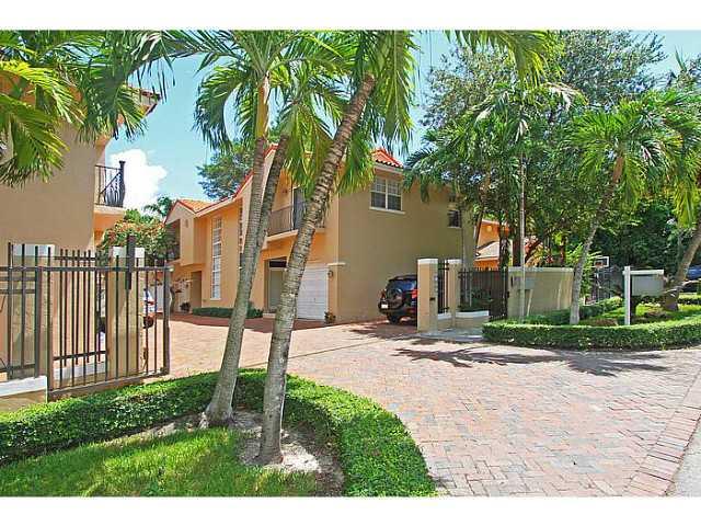 Unique opportunity to live in the heart of Coconut Grove in this private, gated compound. Retreat to a spacious corner unit with vaulted ceilings, 3 bedrooms, new appliances, granite countertops and newly renovated bathrooms. Wood floors both upstairs & d ownstairs. One car garage and extra assigned parking space. French doors lead out to patio and complex pool. Immaculate villa!