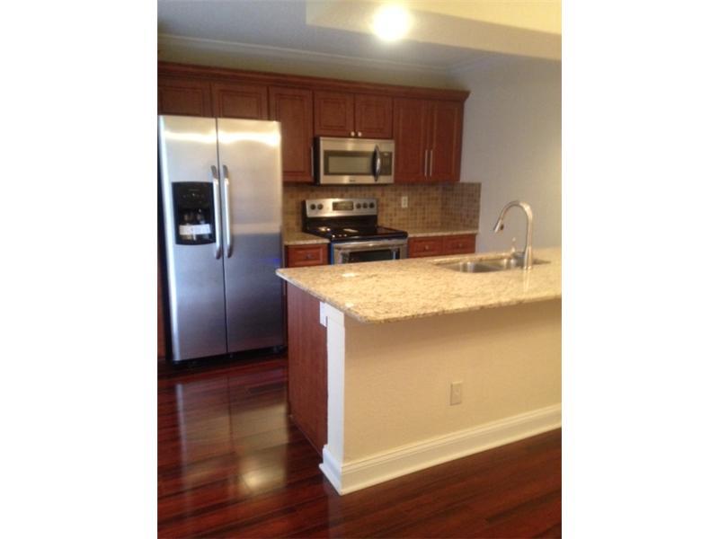 MUST SEE THIS ONE..LARGEST MODEL~REMODELED TOWNHOME FEATURING A BEAUTIFUL KITCHEN COMPLETE WITH NEW CABINETS, GRANITE COUNTERS, BRAND NEW STAINLESS APPLIANCES AND BUILT IN WINE CHILLER~ALL NEW LIGHTING & FIXTURES~CROWN MOLDING AND GORGEOUS DARK CHERRY FLO ORING THRUOUT ALL BEDROOMS AND LIVING AREAS~ NEW GRANITE TOP VANITIES IN ALL BATHS~MASTER FEATURES DOUBLE SINKS, JACUZZI TUB/ SEPARATE SHOWER AND BALCONY LOOKING OVER TILED & FENCED PATIO~ NEWER ROOF AND A/C, THIS ONE HAS A QUIET AND PRIVATE LOCATION!