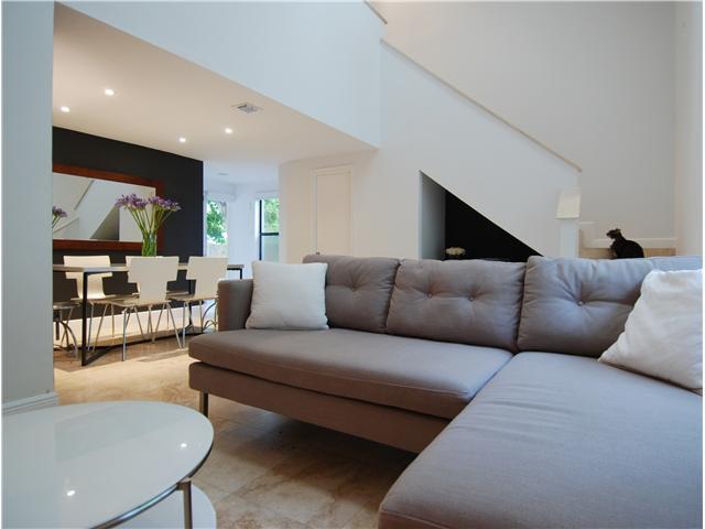 Turn-Key stylish, modern 2 story townhouse with its own private yard in gated community of 10 townhomes across street from Dog Park & Kiddie Park. Top Center Grove location, walk to Bay, Cocowalk, Commodore Plaza, Village Center, etc. 2/2.5 with soaring c eilings, skylights, Saturnia floors, black granite kitchen, superb master suite with walk-in closet, 2 car carport, all new hi-hat lighting throughout, brand new LG dishwasher, new impact glass sliding door, new tankless water heater, new washer/dryer