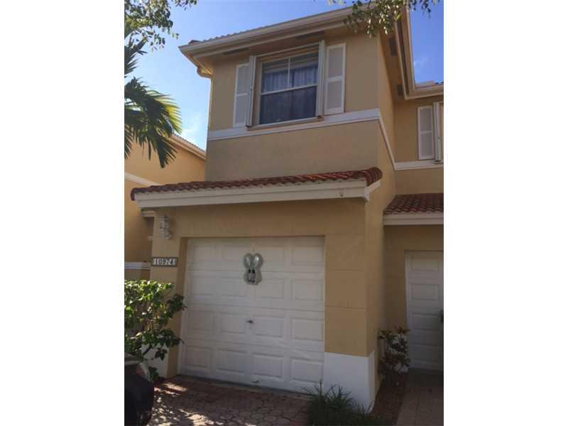 Beautiful Lot and Block Townhouse in great condition, FHA WELCOME, converted garage comfortable family room area enclosed patio. No neighbors in the back, great privacy. Accordion hurricane shutters. Tile throughout 1st floor and Berber carpet on second f loor. Bedrooms with ample walking closets. Ladder to access attic. High Efficiency A/C 3 years old. This is a family oriented community that offers card entrance for security and apleasant community pool. Convenient visitors parking throughout community.
