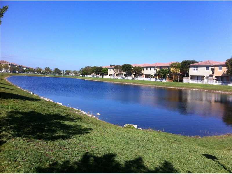 Property is being freshly painted and new carpet is being installed. Bright and airy, this spacious corner unit offers a beautiful view of the lake. Unit offers a full bathroom and bedroom downstairs, tiled floors downstairs, and a full sized washer and dryer in a large utility room. Complex offers resort-like amenities, such as a pool and a children's playground. Walking distance to Ronald W. Reagan Senior High School. MOTIVATED SELLER. PRESENT ALL REASONABLE OFFERS.
