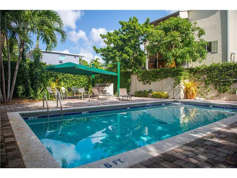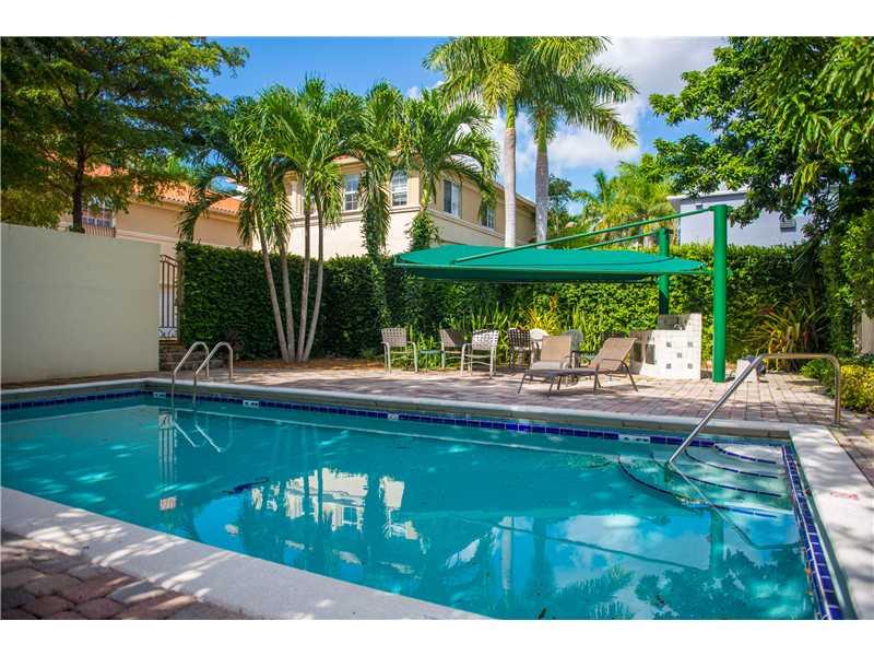 Lush foliage surrounds this private community of 11 townhomes just steps from the Grove village center's galleries, boutiques, cafes and bay front parks & marinas. Enter the gate into a walled courtyard which opens to the main living area. Light filled ro oms with volume ceilings & open living spaces including updated eat-in kitchen and baths. Features include 1 car gar w/washer & dryer, private roof top terrace and community pool. Minutes from downtown, MIA, Key Biscayne and the Beaches.