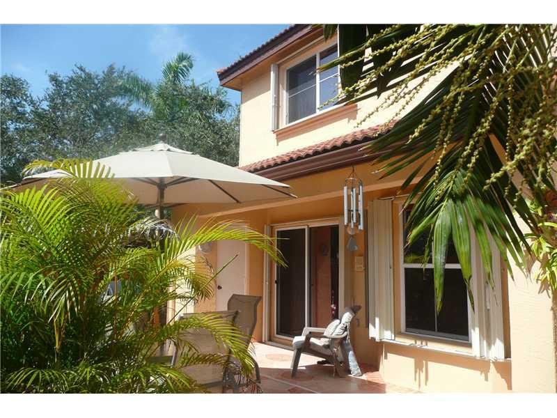 The best lot in the development! Premium corner location with green space in front. Lots of extra parking. Perfectly maintained 3/2.5 with family room, living/dining, breakfast area and handy computer loft area. Lot of upgrades including upgraded baths, l aminate and tile floors, closet organizers, accordion shutters and euro~tile deck. Master bath has huge shower with dual sinks.Corner unit gets 3 extra windows so this house is light and bright. Gated community with pool and play area. Great Davie schools