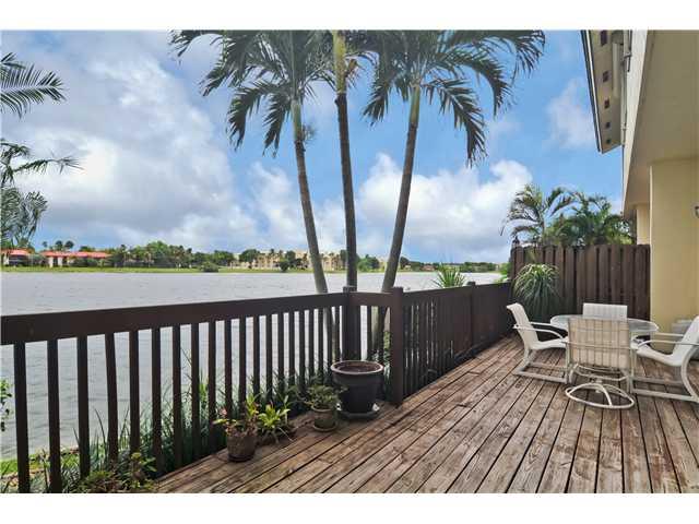 ENJOY SUNRISES & SUNSETS ON THE DECK OF BEAUTIFULLY MAINTAINED LAKEFRONT TOWNHOME.ELEGANT DOUBLE DOORS OPEN TO A BREATHTAKING ALL NEW GOURMET KITCHEN W/SEPARATE BREAKFAST & OFFICE AREA.OPEN STAIRCASE TO 3 BDRMS ON UPPER LEVEL FEATURING A SPECTACULAR MASTE R BATH.HOME IS IN IMPECCABLE CONDITION,PLUS YOU HAVE PRIVACY & SECURITY OF AN ATTACHED GARAGE W/PRIVATE DRIVEWAY.GARAGE & FRONT DOORS ARE NEW & COMPLY W/HURRICANE CODES.WASHER & DRYER + ALL WINDOWS HAVE HURRICANE SHUTTERS.GATED COMMUNITY.
